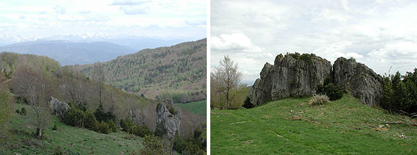 Este recorrido discurre en el valle de Urraúl Alto, en la localidad de Ayechu. La primera parte del mismo unos 10 km los podemos hacer en coche, ya que se trata de una pista muy bien cuidada. Ascenderemos en coche hasta el collado que separa Urraúl alto con el Valle de Aézcoa. Desde este punto ascenderemos al monte Borrokosko(1406 m.). Es un paseo que no tiene ninguna dificultad, y durante su recorrido podemos ver bonitas panorámicas de los valles de Aézkoa, los Pirineos y el valle de Urraul Alto. En la foto superior podemos ver los restos de la Erminta de Raja, con la peña de La Raja al fondo.