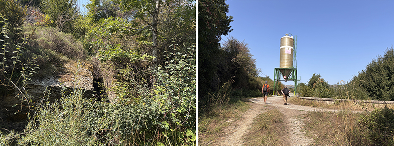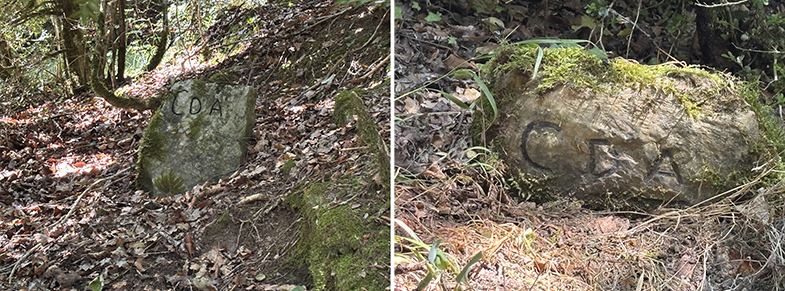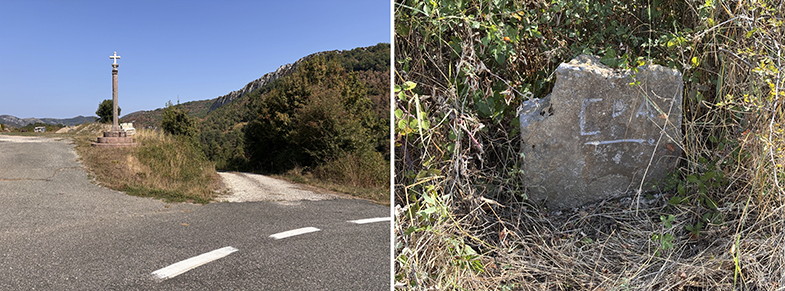 Allí hay un crucero y a la derecha del mismo sale un camino, que desciende. En este punto también hay dos piedras talladas en este siglo por los vecinos de Abaurregaina.