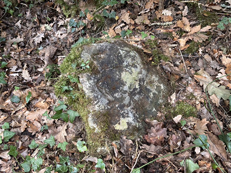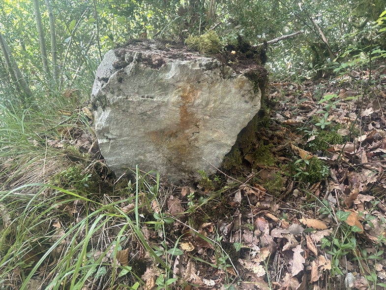 Gran piedra tallada con el mapa de Aezkoa y la cañada P‑26.