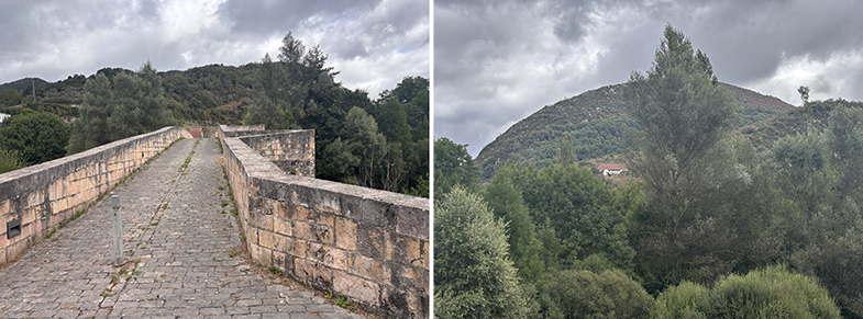 Se visitan elementos patrimoniales: puente medieval de Aribe, hórreos tradicionales, muros de piedra antiguos.