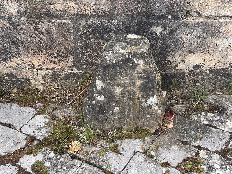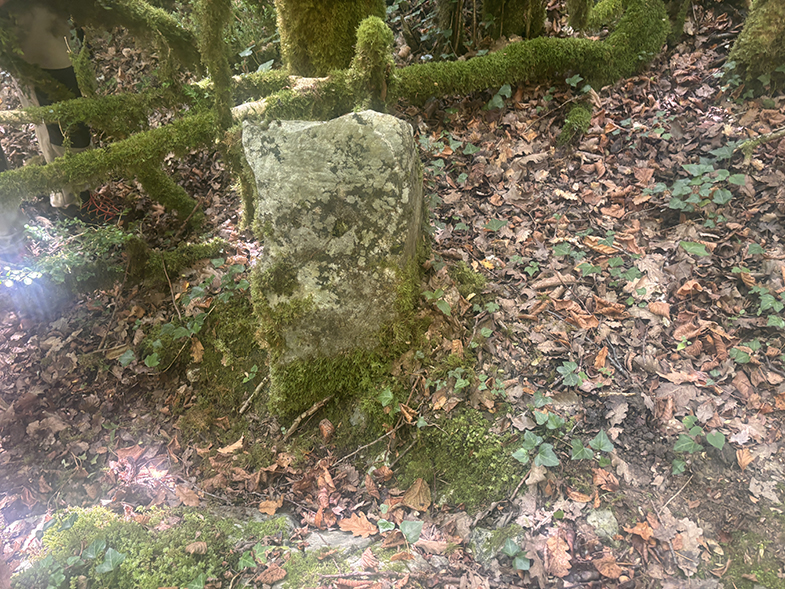 Portillo de madera → piedra contra el muro de una huerta.