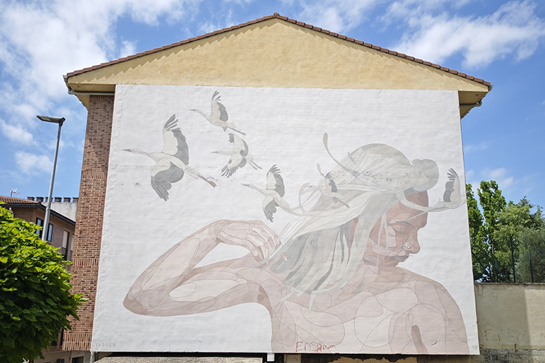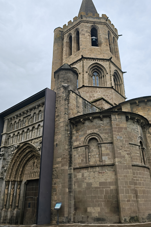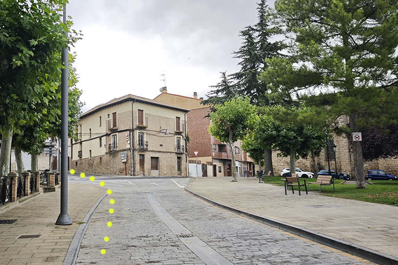 Nuestro paseo se inicia desde la iglesia románica de Santa María la Real, con su impresionante portada, para recorrer la calle Mayor de Sangüesa, disfrutando especialmente de los tres palacios que nos van saliendo al encuentro: El Palacio de Añués, el de los Iñiguez-Abarca y el de los Sebastianes. Una calle que es a su vez Cañada Real de los Roncaleses.