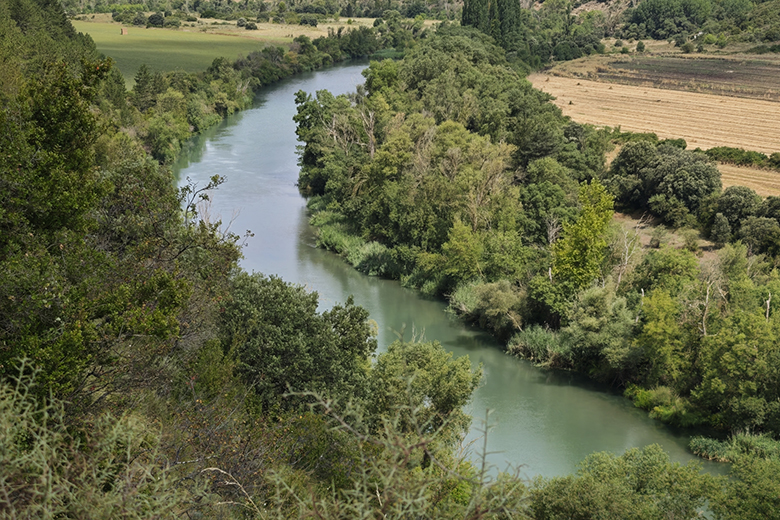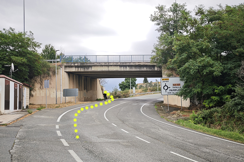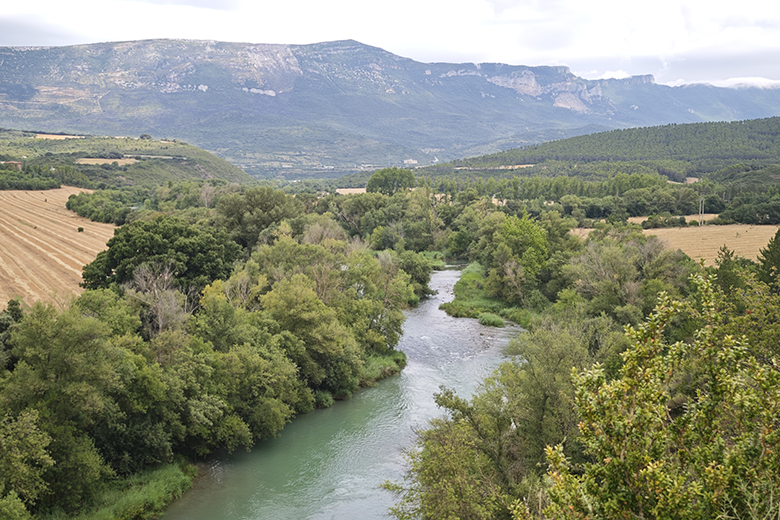 El recorrido continúa, ya de regreso, por un camino, mitad senda, mitad pista, muy próximo al rio Aragón. Una pista parcelaria, encementada en algún tramo, nos llevará de vuelta a Sangüesa.