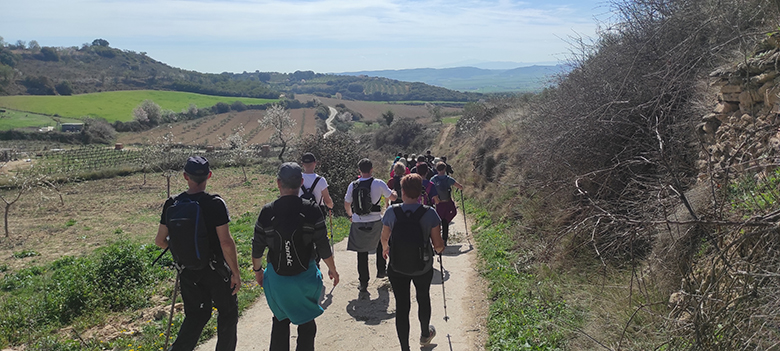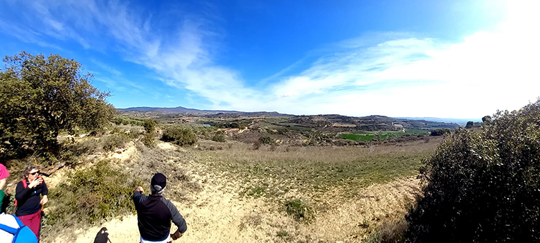 Se trata de un recorrido circular de unos 12 km que sale y llega a la Villa Romana de las Musas. El recorrido transcurre practicamente es su totalidad por caminos agrícolas, llega hasta la localidad de Arroniz y regresa de nuevo a Las Musas. En el camino de ida hacia el pueblo pasearemos entre campos de cultivo de secano, predominando el cereal y el espárrago, mientras que en el de vuelta veremos muchos olivares y viñas principalmente, con almendros salteados por caminos y ezpondas.