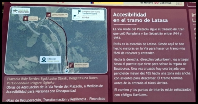 Aprovechando la infraestructura de la Vía Verde del Plazaola, y concretamente el primer tramo desde Latasa hasta la Venta de Urritza camino de Lekunberri, se puede realizar este corto, pero bonito paseo, ideal para las personas con movilidad reducida. Aunque breve, discurre por un tramo con gran encanto paisajístico y con un pasado histórico industrial evidente al pasar por las ruinas de la antigua ferrería.