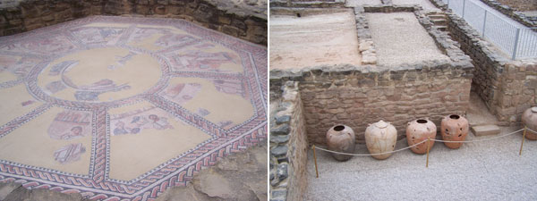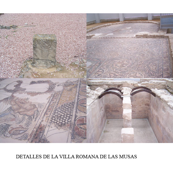Arellano . El nombre le viene por el decorado de uno de los mosáicos encontrados . La zona debió ser importante en aquella época ya que en el recorrido se encuentran los restos de lo que fueron otros dos asentamientos romanos y cerca de Las Musas un puente romano de dos ojos que salva el cauce de Rio Mayor . Se trata de una villa agrícola de los siglos I a IV . Las primeras noticias de su existencia se remontan a finales del s XIX cuando se descubrió el mosáico que le da nombre ( se encuentra en Madrid ) . Una de sus principales actividades fue la vitivinícola . A destacar los mosáicos que se encuentran en el cubiculum ( habitación ) , el Oecus ( sala de recepciones ) y el octogonal de las Musas .
