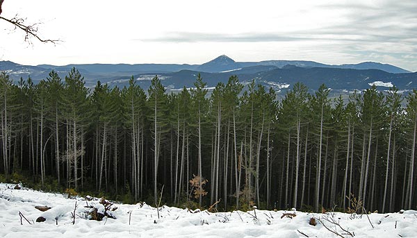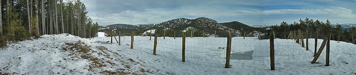 pinares, hoy están recorridas por lo que parece un cortafuegos de gran anchura que ha dejado las cimas despejadas.