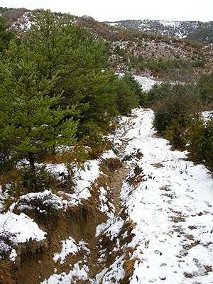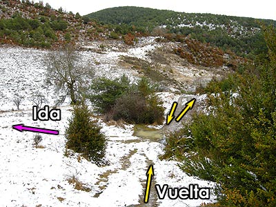 Dado que hemos recorrido la zona en unos días en que el terreno estaba cubierto por la nieve, nuestra descripción en los cruces puede verse algo trastocada, pues puede escaparse algún detalle que quedara oculto bajo la capa helada. No obstante la sencillez del recorrido no deja lugar a dudas.