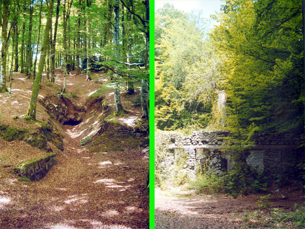 En las minas observamos las ruinas de los barracones y las viejas entradas a las galerías de extracción, ya antiguamente abandonadas donde se extraía plomo y algo de pirita que transportaban a Bilbao. Tanto en este punto como en la bajada, se alternan las formaciones de rocas calizas con esquistos y pizarras, lo que da lugar a sumideros en los puntos en que estas formaciones entran en contacto, tal y como se puede ver cerca del camino.El descenso termina junto a la boca de un túnel del desaparecido ferrocarril del Plazaola, siendo este sólo transitable a pie y su longitud ronda los 3 kilómetros.